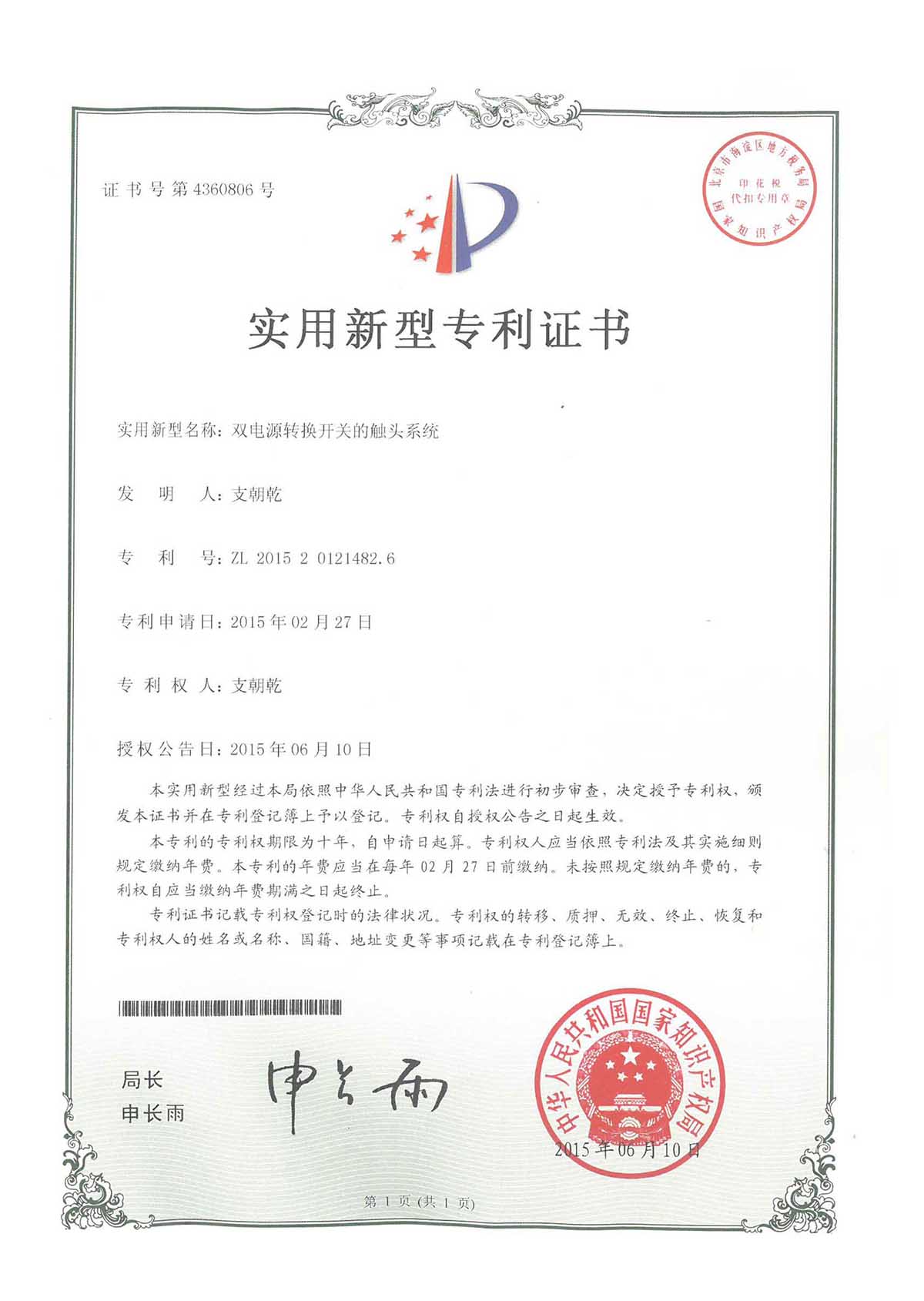 实用新型专利证书-一种带浪涌保护的塑壳断路器
